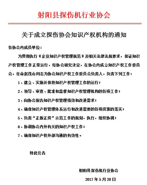 关于成立探伤协会知识产权机构的通知